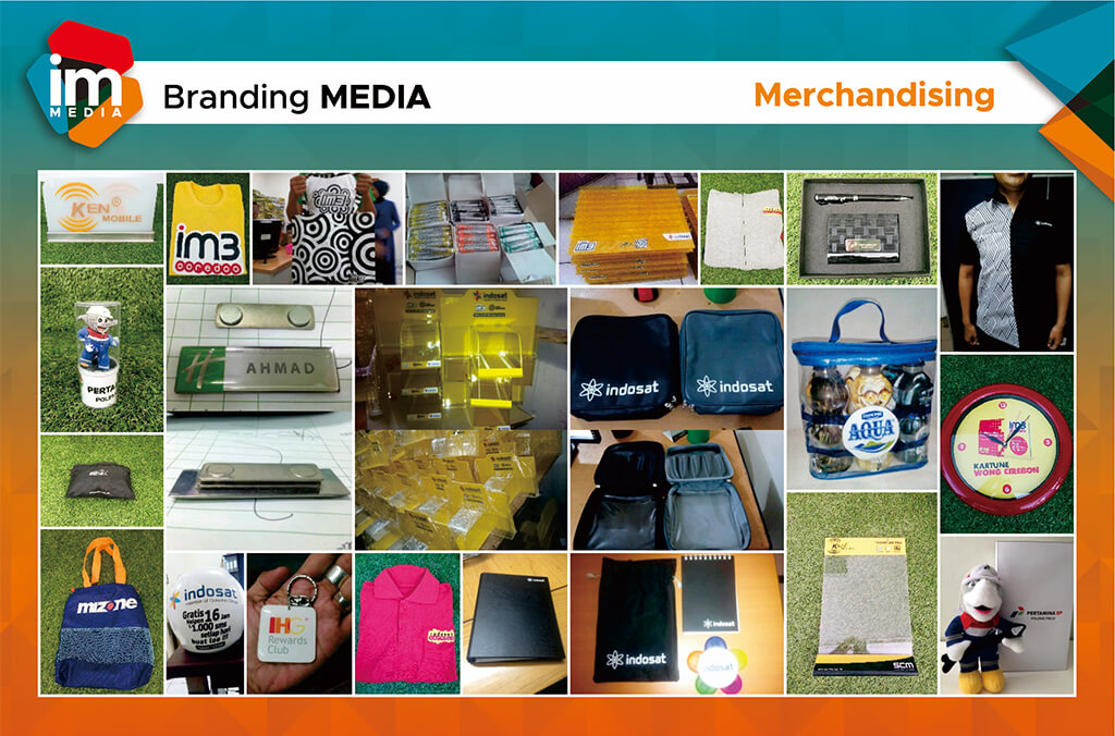 IM MEDIA INDONESIA Merchandising adalah Pengadaan jasa & barang – barang promosi yang berfungsi untuk menarik konsumen, mengenal lebih dekat dengan produk anda, alat promosi paling jitu, meningkatkan omzet, menjadi pembeda produk yang sejenis, & mempunyai nilai ekonomis.